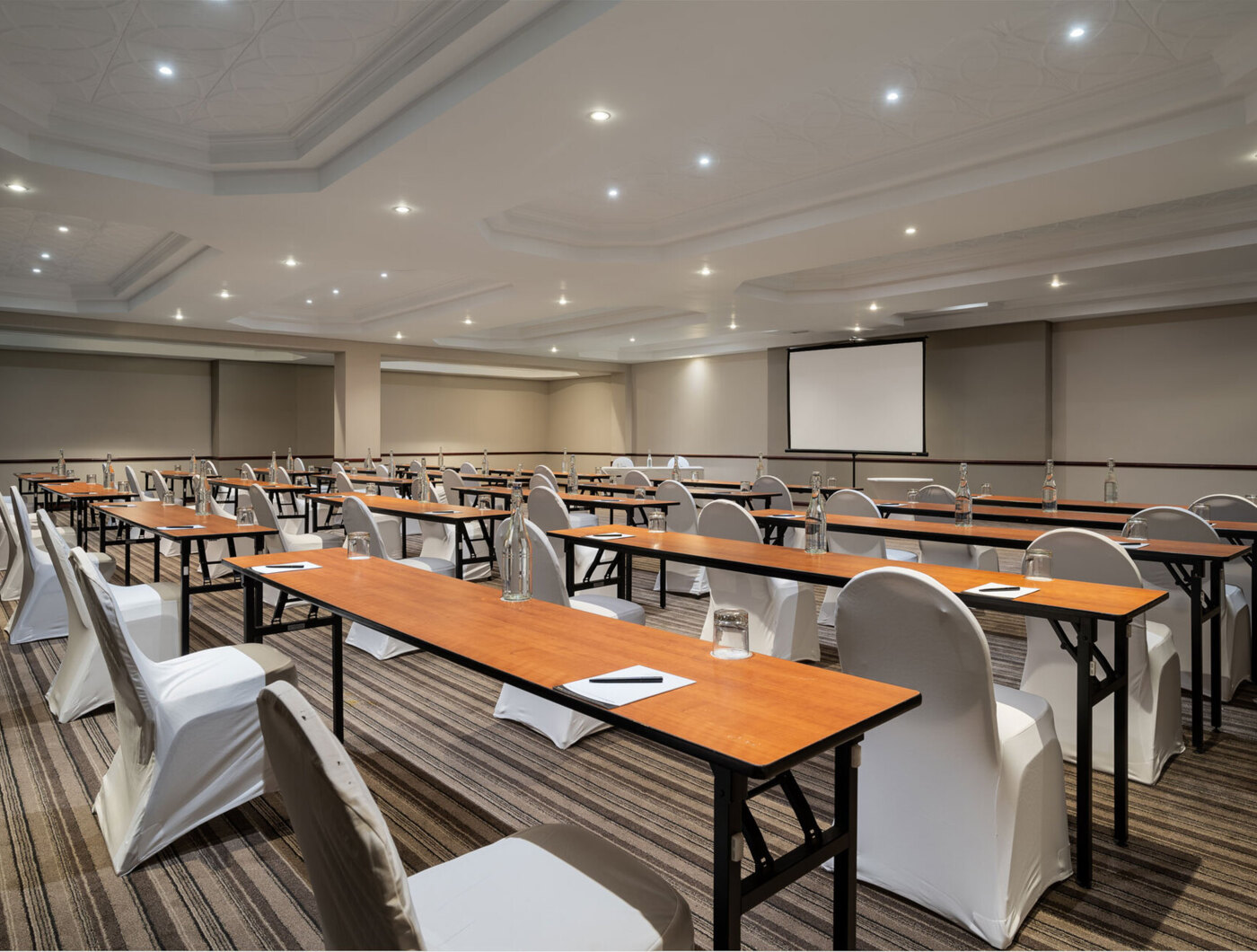 The conference facilities at Premier Hotel Regent offer 12 versatile venues, accommodating up to 200 delegates. Ideal for any event, from corporate conferences to weddings, our spaces can be tailored to your specific needs. Book online or contact our expert consultants to secure the perfect setting for your next event.
