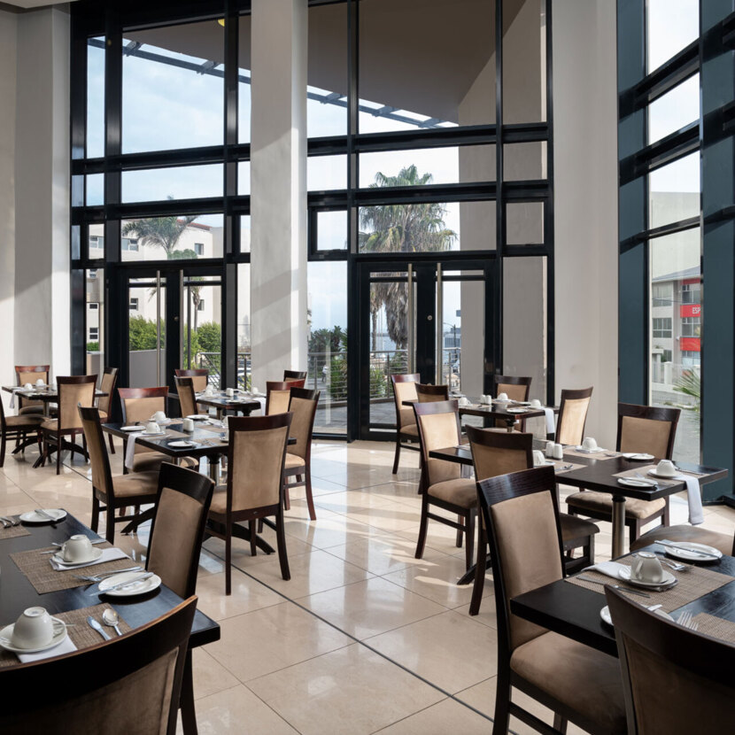 This elegant restaurant, located in the East London International Convention Centre, offers breakfast (lunch for conferencing guests) and dinner. Guests can enjoy a dining experience in a stylish, modern setting, ideal for both casual meals and business gatherings, with impeccable service.